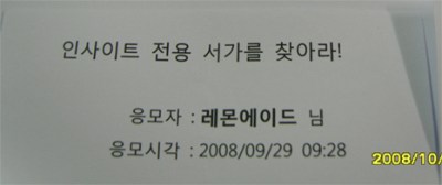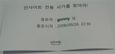 당첨되신 김기웅, 레몬에이드, 정희종, gonny, nyam 님께서는 성함과 연락처, 주소, 받고싶은 책을 저희 이메일(insight at insightbook.co.kr)로 보내주세요. 아울러, 인증샷을 찍으셨지만 아쉽게도 마감 시한을 놓치신 오세형 님께는 별도로 연락을 드렸습니다. 감사합니다. ^^