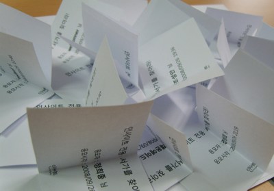 성황리에 마친 ‘인사이트 전용 서가를 찾아라’ 이벤트의 당첨자를 발표합니다. 모두 22분께서 참여해주셨네요. 감사합니다.이번에 사용한 추첨 방법은 IT 전문 출판사답게 ‘수작업으로‘ 했는데요. 먼저 응모하신 한 분 한 분 응모 용지를 만들고, 반으로 접어, 해프닝 님의 예쁜 방울 털모자에 송송 집어넣고 저희 식구들이 한 분씩 뽑았습니다.
