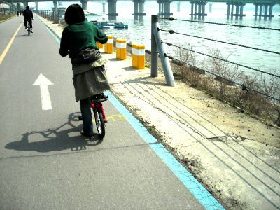 개인 자전거 세 대와 빌린 자전거 두 대로 산뜻하게 봄바람을 가르며 시원~하게 출발했습니다. 한 사람만 빼고요. 네, 접니다(Joe;).(자전거를 못타던 두 명 중 한 명이 밝혀지는 순간이네요^^;)