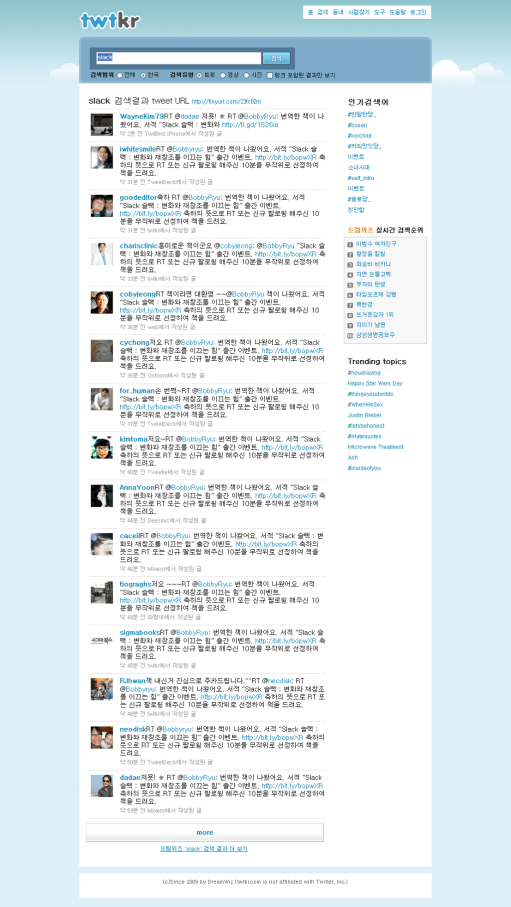 오늘(5월 4일) 오전에 세어보니 223개의 RT가 달려 있더군요.