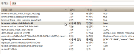 세 번째에 보이는 browser.urlbar.clickSelectAll 항목!!!!!!