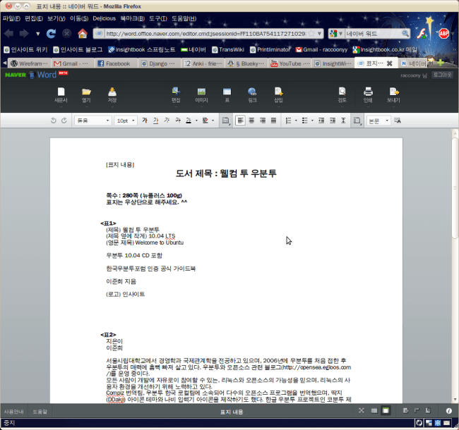 이런 과정을 거쳐, 현재도 우분투에서 업무를 하고 있습니다. 출판 에디터가 컴퓨터를 활용하는 범위가 좁아서인지는 몰라도 그리 큰 불편 없이 (+ 구글신과 우분투 포럼의 도움으로) 우분투에 적응하고 있는데요.