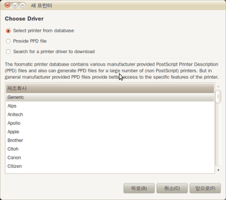 네트워크에 연결된 컴퓨터와 프린터들이 나타나기에 공유 프린터를 선택하니, 드라이버 선택 창이 나타납니다.