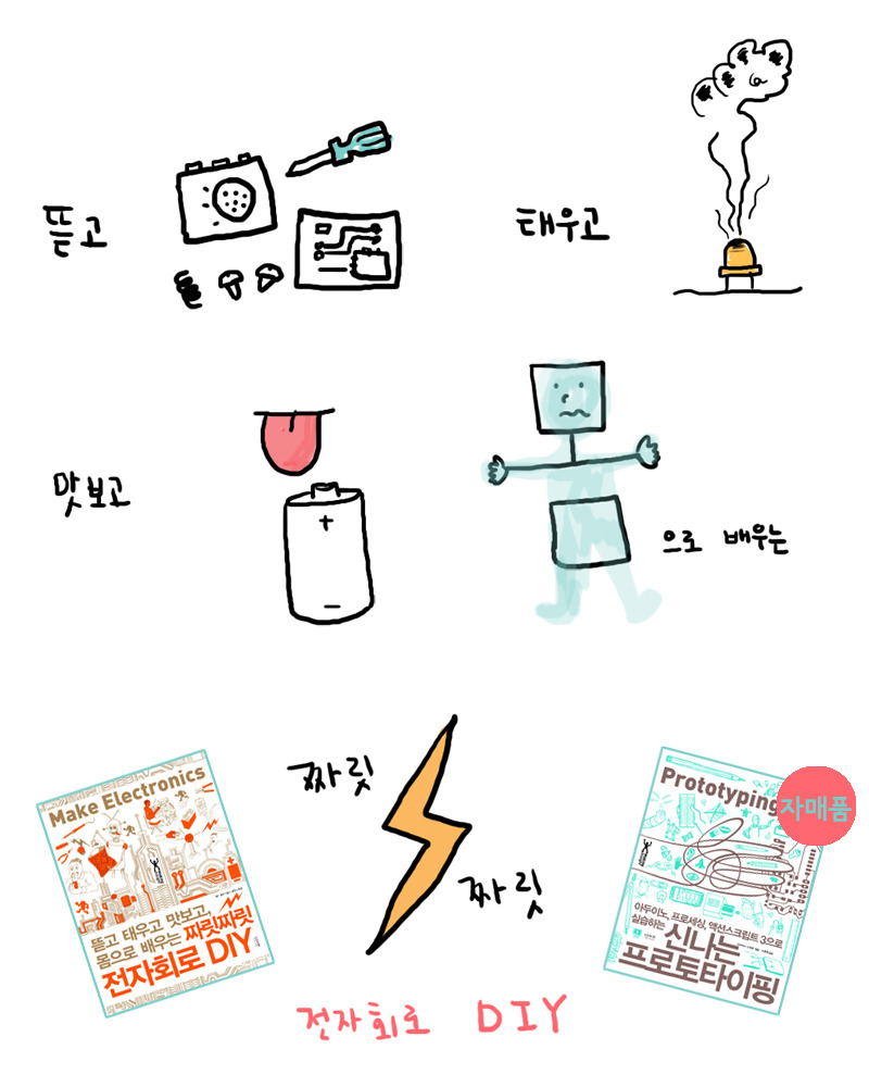 저는 이 작은 부품들을 이용해서 나만의 회로를 꾸몄을 때 느낀 경이와 흥분을 절대 잊지 못할 것입니다. 이 책을 쓰기로 결심했을 때, 가장 원했던 것은 이런 짜릿한 기분을 처음 전자회로를 접하는 청소년들도 느낄 수 있도록 도와줄 수 있으면 좋겠다는 것이었습니다.
