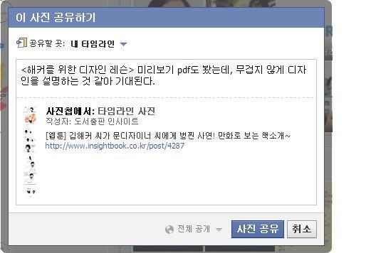 /페이스북 인사이트 페이스북에 올라온 <해커를 위한 디자인 레슨> 게시물에서 [공유하기]를 눌러 기대평과 함께 친구들에게 소개해 주세요.