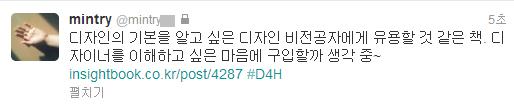 /트위터짧은 기대평과 <해커를 위한 디자인 레슨> 웹툰 포스트 링크(http://www.insightbook.co.kr/post/4287), 해시태그 #D4H를 넣어 트윗을 날려 주세요~