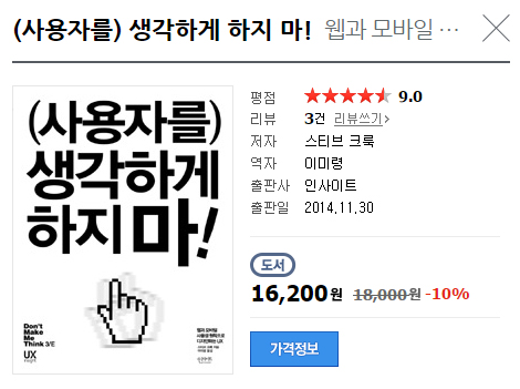 이렇게 편집자가 추천하는 책은 읽어야 한다고 들었습니다. 저도 원제 “Don’t Make Me Think!”를 보는 순간, 이 책에는 뭔가 있다! 라는 생각이 들었지요. (이제 와서 보태기…)
