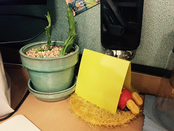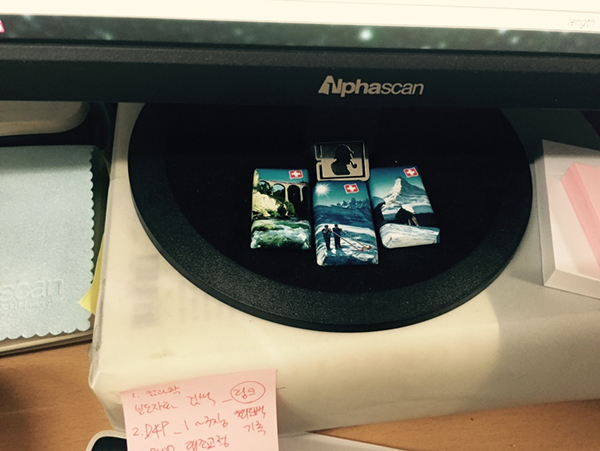 한 켠에 자석으로 고정해놓은 핸드폰 거치대. 아이디어 굿! 귀여운 엉덩이를 살포시 내놓은 미키 마우스를 보니 과연 유머를 지닌 편집자의 책상답군요. (오해 금지. 풀밭 위 텐트 속에서 책 읽는 미키마우스랍니다.)