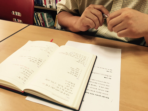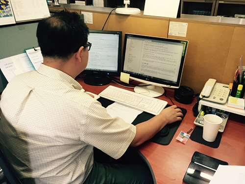 꼼꼼한 기록이 돋보이는 편집장님의 수첩. 컴퓨터가 있어도 수첩에 필기를 해놓아야 마음이 편하다는 하시네요.