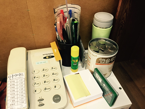 평범한 문구들 사이에서 동전으로 가득한 ‘앱솔루트’ 캔이 눈에 띕니다.