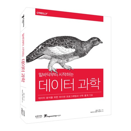 ‘밑바닥부터 시작하는 데이터 과학’은 파이썬 프로그래밍으로 데이터 과학을 어떻게 하는지 알려주는 기본서입니다. 이 책은 데이터 과학을 시작하는 데 필요한 프로그래밍 실력을 키워 주고, 데이터 과학의 핵심 방법론에 익숙해지도록 도와 주는 데 목표를 두고 있습니다. 파이썬은 데이터 과학에서 대단한 위용을 자랑하는 프로그래밍 언어입니다. 수많은 사용자에게 사랑을 받고 있는 만큼 데이터 분석과 처리를 더 효율적으로 할 수 있게 도와주는 Numpy, pandas 등 전문화된 도구가 아주 많습니다. 실무에서는 이런 도구를 사용하지 않고 데이터 과학을 한다는 것은 상상하기도 어려울텐데요. 하지만 기초를 배우고 싶어 책을 집어 든 분이라면! 이미 잘 만들어진 도구를 어떻게 쓰는지에 대한 것보다는, 직접 코딩을 해보면서 ‘바닥부터’ 데이터 과학을 배워나가는 것만큼 데이터 과학을 잘 들여다 볼 수 있는 방법이 또 있을까요? 🙂