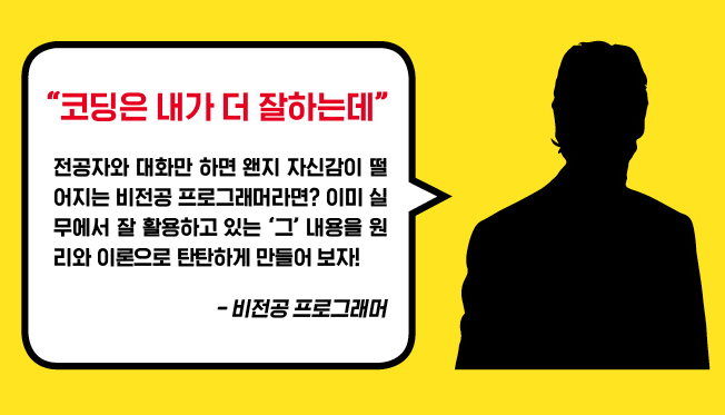 컴퓨터학과를 전공하지 못해서 괜히 주눅이 드나요? 걱정마세요. 이미 실무에서 잘 활용하고 계시잖아요. 이미 잘하고 있는 일에 근거 없는 자신감 없음에 시달리시는 비전공 프로그래머께 권합니다. 이미 잘 활용하고 계시는 ‘그’ 내용의 원리 한번쯤 이론으로 다져 보자구요!