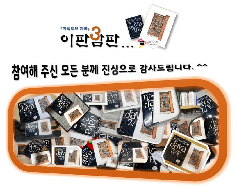 11월 13일부터 21일까지 진행한 이펙티브 자바 ‘이판삼판’ 이벤트에 참여해 주신 여러분! 감사합니다.