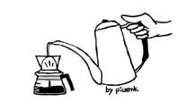 고수이신 C점장님의 드립 커피 과정에는 여유와 리듬감이 있다. 경쾌한 음악에 박자를 맞추듯 주전자와 팔은 움직이지만, 주전자의 주둥이에서 내려오는 가는 물 줄기는 얼어버린 고드름처럼 일정하고 고르다. 그 물이 커피의 입자에 닿으면 커피는 살아 숨쉬듯이 부풀어 오른다. 때로는 거칠게 반응하는 커피 입자들을 고른 물줄기로 바른 물길을 내어 절도있게 잠재우고, 시들한 커피 입자들에겐 다시 생명력을 불어 넣는다. P군이 과정에 얽매여 커피에 끌려간다면, C점장님은 커피를 자유자재로 부리는 것이다.