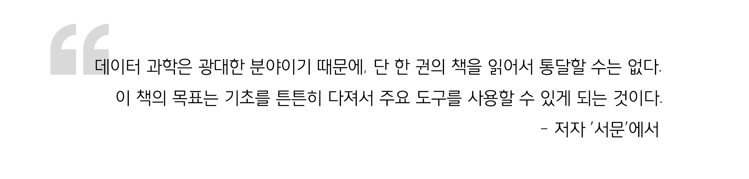 이 책은 데이터 과학에 입문하는 이들에게는 훌륭한 안내서가, 이미 어느 정도 알고 있는 이들에게는 그 내용을 체계적으로 정리해 줄 핵심 활용서가 될 것입니다.