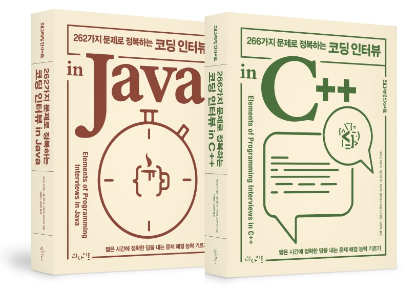 《262가지 문제로 정복하는 코딩 인터뷰 in Java》와 《266가지 문제로 정복하는 코딩 인터뷰 in C++》는 다음 인터넷 서점에서 구매하실 수 있습니다.