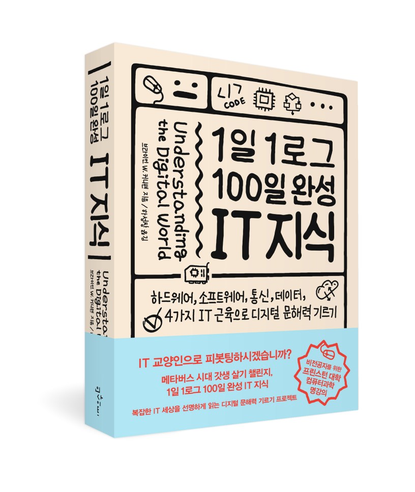 브라이언 W. 커니핸의 《1일 1로그 100일 완성 IT 지식》은 이러한 경각심에서 비롯되었습니다. 이 책의 원서 Understanding the Digital World는 프린스턴 대학에서 20년 넘게 거의 매년 가을 학기에 열리는 ‘우리 세상의 컴퓨터들(Computers in Our World)’ 수업의 교재인데요. 영문학, 경제학, 역사학, 음악, 미술 등 다양한 전공의 비이공계 학생을 대상으로 합니다. 사람들이 전공이나 각자의 배경에 관계없이 컴퓨팅 이슈에 민감하게 반응하기를 바라며, 우리 삶과 밀접한 컴퓨팅의 핵심 요소를 인문학과의 접점에서 다룹니다.