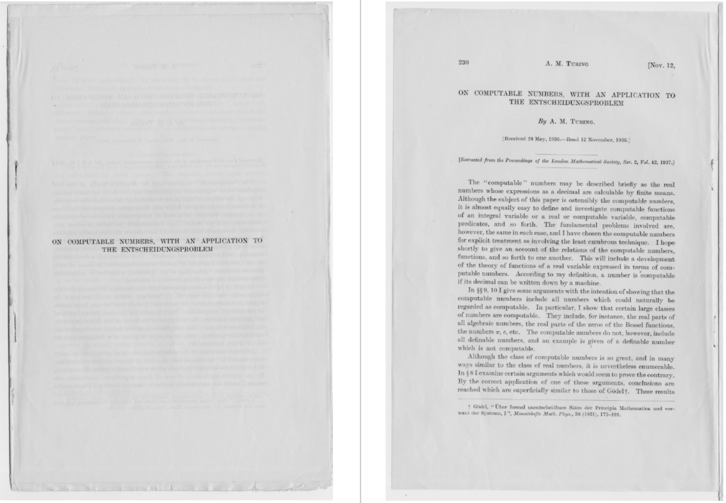 <On Computable Numbers with an Application to the Entscheidungsproblem>(1936, 앨런 튜링)