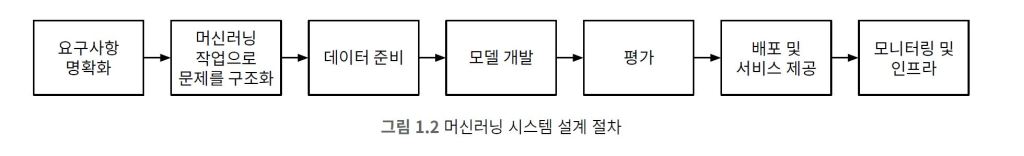 복잡한 머신러닝 시스템을 탄탄하게 설계하려면 단계별로 무너지지 않게 틀을 만드는 것이 중요합니다. 앞서 나온 관련 도서 《가상 면접 사례로 배우는 대규모 시스템 설계 기초 1, 2》에서는 5단계 접근으로 대규모 시스템을 설계했다면, 머신러닝 시스템은 7단계 접근법에 따라 단계별로 설계합니다.