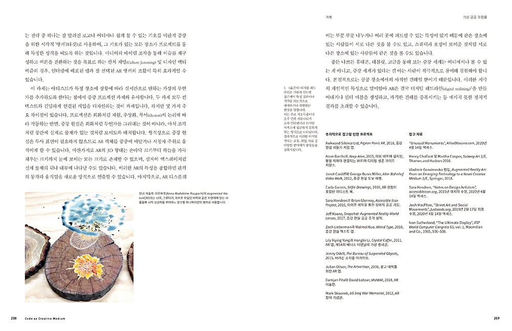 대부분의 크리에이티브 코더가 학습자이면서 교수자인 경우가 많아, 학습하는 입장과 가르치는 입장 두 측면에서 모두 어려움을 겪습니다. 이 책은 두 장벽이 상호 보완하며 서서히 감쇄하도록 유도하는, 매우 적절한 방법론을 제시합니다. 정답 코드를 공유하며 유혹하는 참고서 형식을 따르지 않고 문제의 핵심을 밝히고 프로젝트를 해결하는 모듈화된 구성 방식을 지향하는 책입니다. 미디어 작품의 제작과 기술 해석 방식에 대한 다면적 접근을 살펴볼 수 있습니다. – 양민하, 미디어 작가, 서울시립대 교수