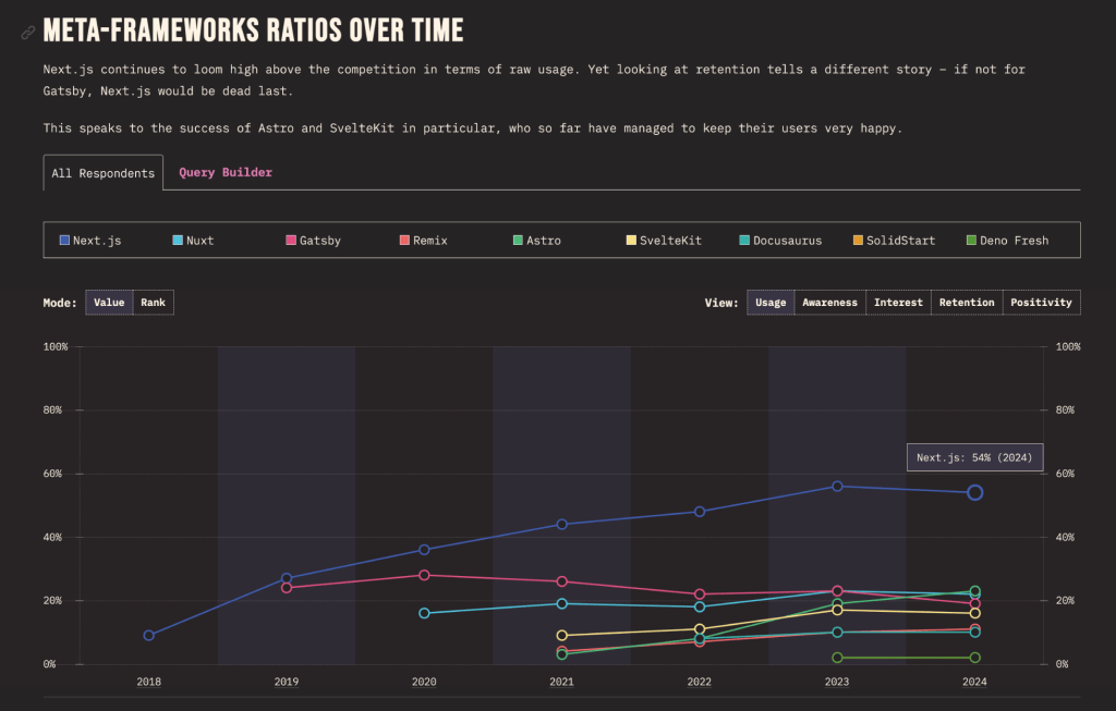 메타 프레임워크 사용량 통계(State of JS 2024년 통계자료)