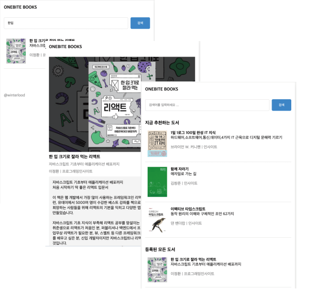 2023년 4월 <한 입 크기로 잘라 먹는 리액트>가 처음 발간된 이래로 이 책은 서점과 학교 등에서 리액트 입문 교재로 많은 관심과 사랑을 받고 있습니다. 아마도 IT 전문 교재에서는 찾아보기 힘든 친절함과 세밀함이 독자의 요구에 맞았기 때문이 아닐까 생각합니다. ‘한 입 크기로 잘라 먹는’ 시리즈의 특징은 우선 독자 수준에 맞는 프로젝트 예제를 선정하는 일로 시작합니다. 프로젝트 예제는 지나치게 어렵지도 쉽지도 않은데, 그렇다고 실무와 무관한 예제는 거부합니다. <한 입 크기로 잘라 먹는 Next.js> 역시 프로젝트를 만들어 가면서 필요한 Next.js의 기능을 소개합니다. 어떤 기능은 직관적으로 쉽게 이해할 수 있는 기능도 있지만, 어떤 기능은 많은 부분이 연관되어 있어 쉽게 이해하기 어렵습니다. 이때 ‘한 입 크기로 잘라 먹는다’라는 시리즈의 제목처럼 기능을 잘게 쪼개고 상세한 텍스트와 직관적인 도해를 섞어 독자가 납득할 수준으로 소개하는 것이 이 책의 장점입니다. 아무리 복잡한 기능도 쉽게 설명할 수 있다는 필자의 노력 덕분에 독자는 Next.js의 고급 기능에 한 발 더 다가갈 수 있습니다.