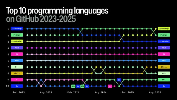 2025년 8월 타입스크립트가 깃허브 최다 사용 언어로 부상했다(사진 출처: 깃허브).